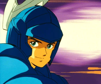 Hashiba Tôma (Thomas Hashiba en VF) (羽柴当麻 Hashiba Tōma) Doublé par Hiroshi Takemura Sa Vertu est la Sagesse. Porteur de l'armure Tenku (de l'Air), Tôma est le petit génie de la troupe (250 de Q.I), il aime bien avoir un plan avant de combattre. C'est un passionné d'histoire. Il s'entend très bien avec Seji. Son armure bleu foncée possède un arc (Shôhakyû) comme arme. Son nom lui vient d'un personnage historique réel, Toyotomi Hideyoshi. |